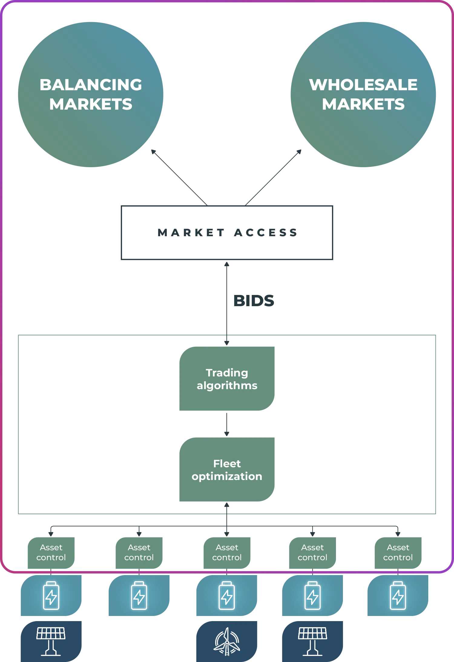 We provide a route-to-market service for asset owners, with a direct and transparent path to the power markets. Operating as both a Balance Responsible Party (BRP) and Balance Service Provider (BSP), we bring neutrality, transparency, and alignment of interests, giving you a clear and performance-driven route to market participation.